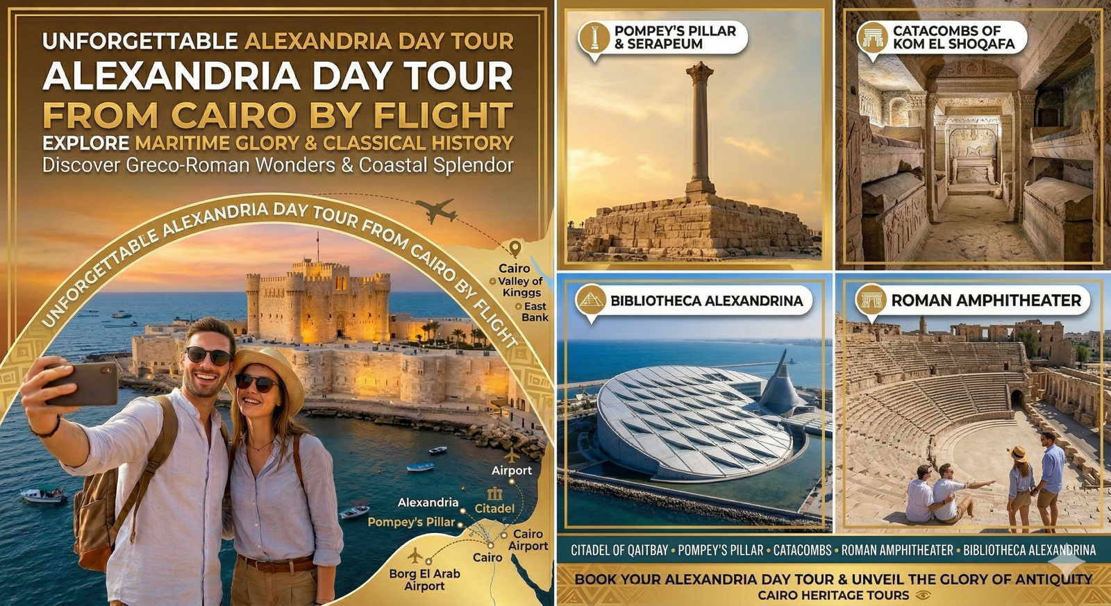 • Transfer by private A/C vehicle to Alexandria (~220 km)